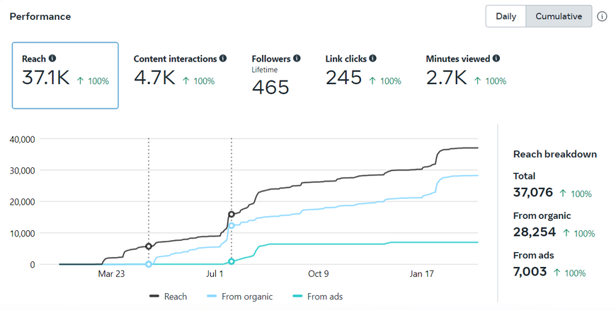 Added 465 new followers and reached 37,000 on Facebook in pages’ first year.